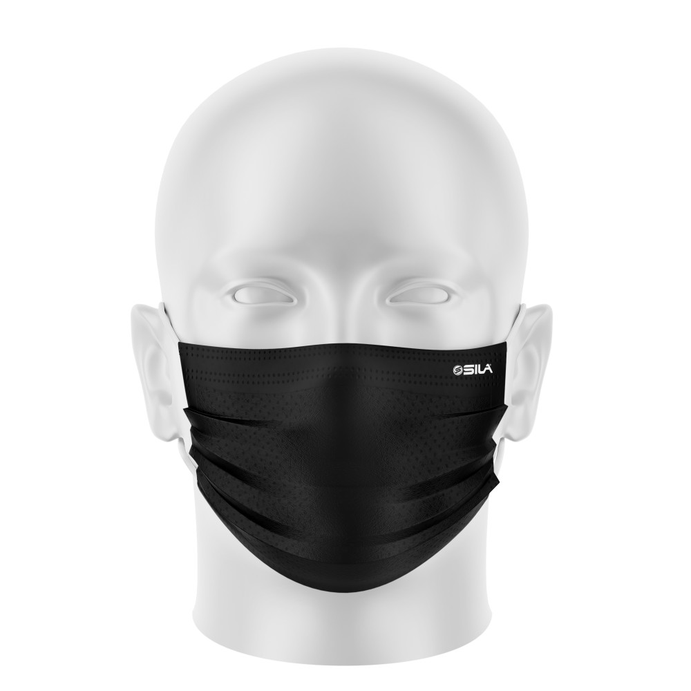 LOT Masques de Protection PRIME Noir - forme plate - 3 couches - Réutilisable et lavable