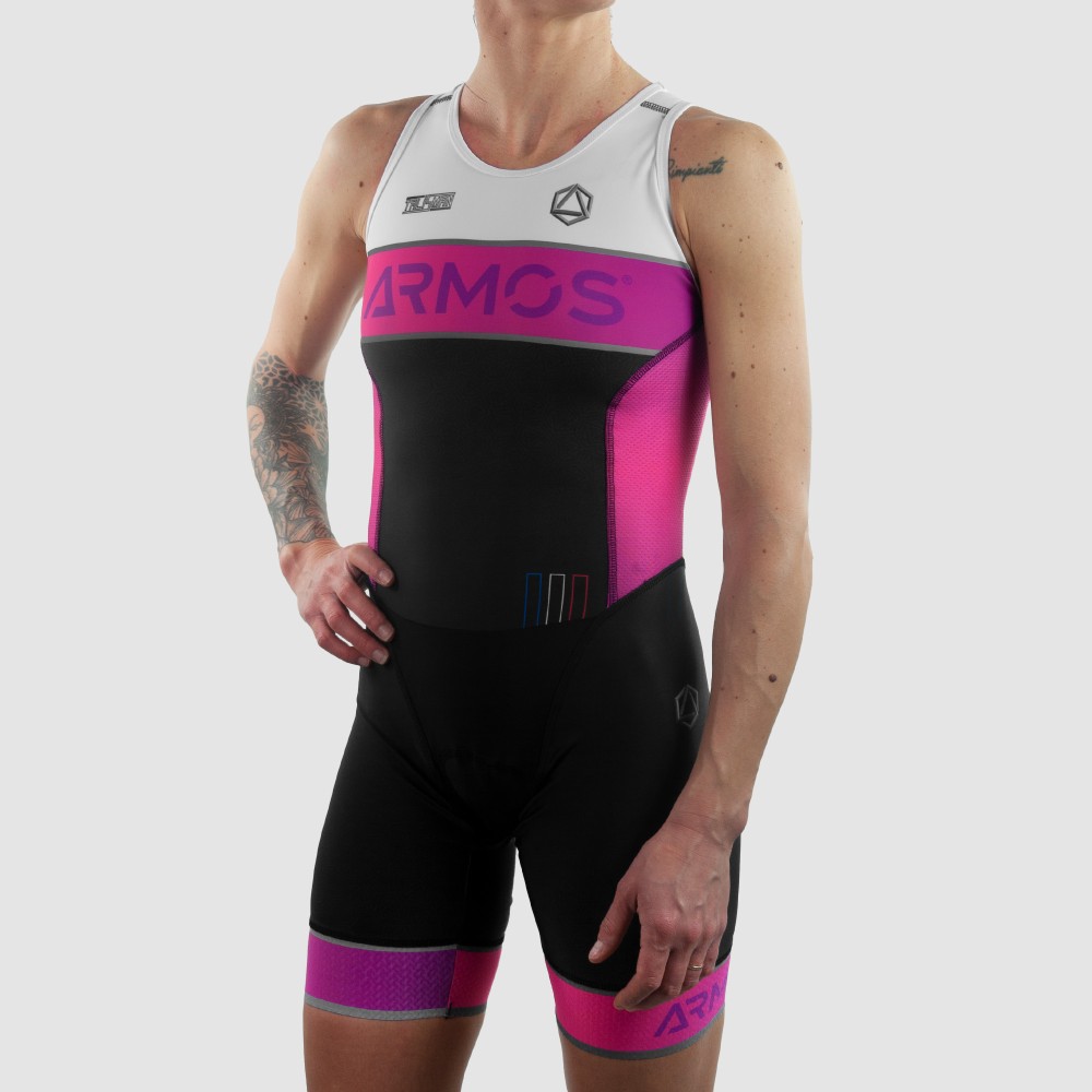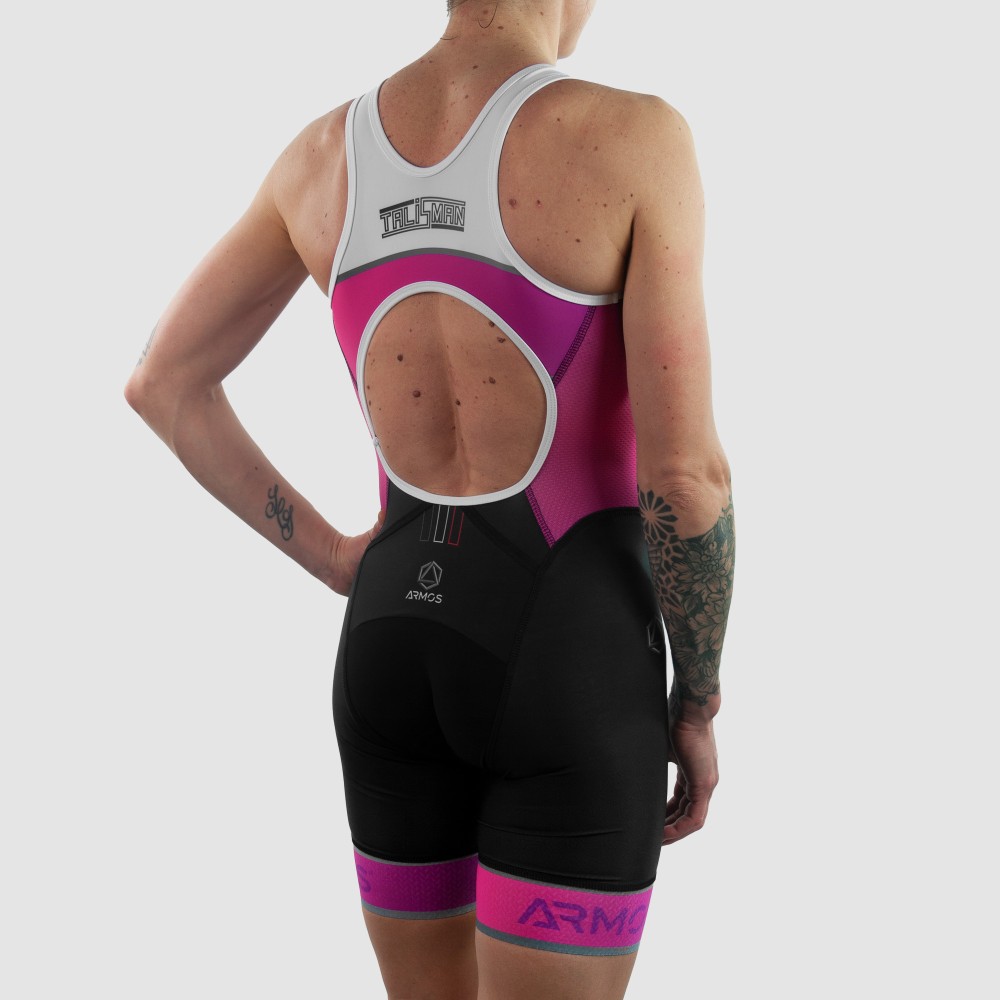 The ARMOS TALISMAN trisuit has been specially designed for short distances. Its aerodynamic Femme cut with swimmer back and quick-drying fabric will allow you to perform very quickly after each transition. Its short-distance skin will be perfectly suited to take on your challenge from XS triathlon to M.
