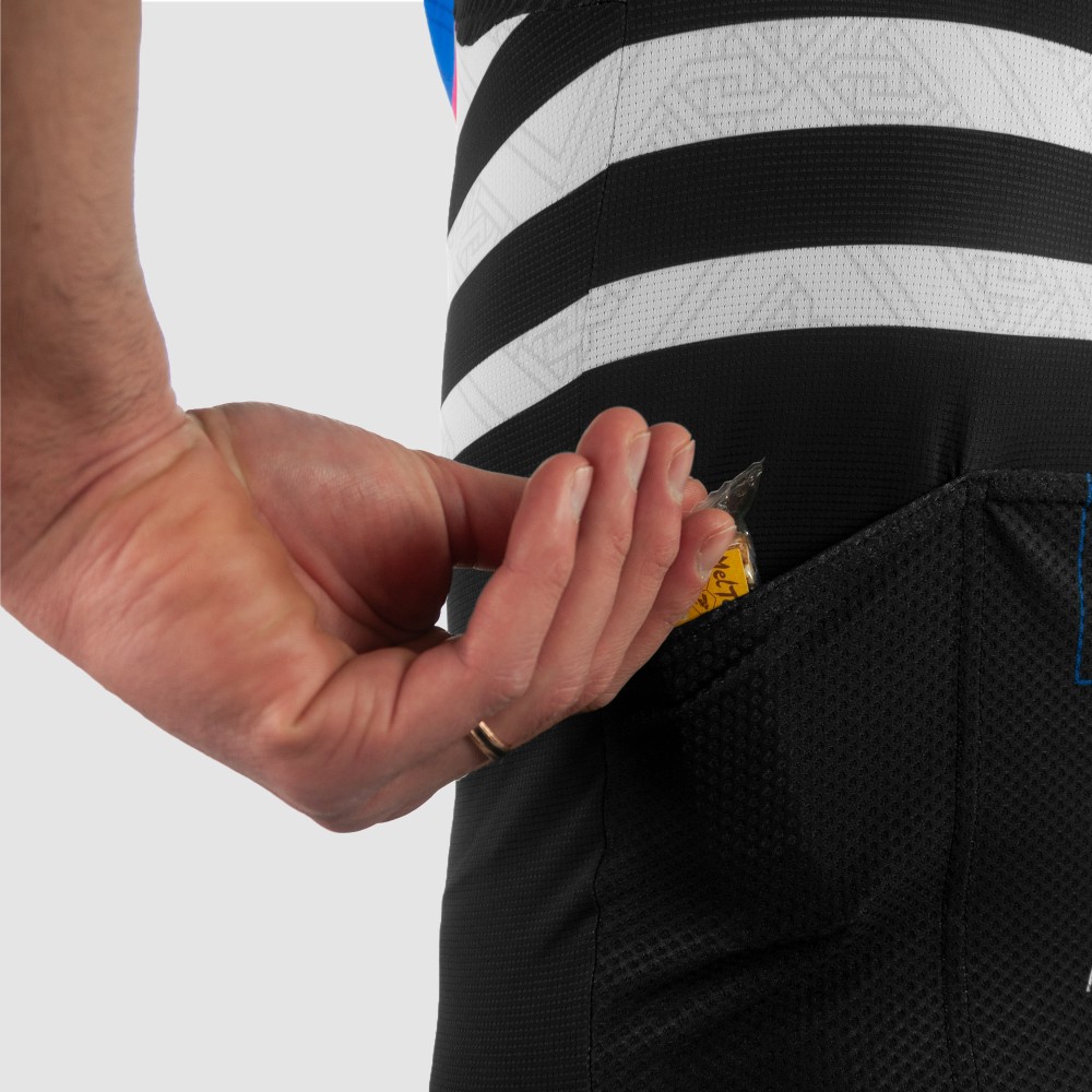 Make history with this ICON jersey. Featuring a combination of very airy and breathable fabrics, you won’t feel it so much it gives a second skin feel. Its sleeves are made of seamless laser cutting to limit irritations. This product is ideal for summer and spring. Totally made in Italy, its quality is impeccable and you will not be able to do without this exceptional jersey.