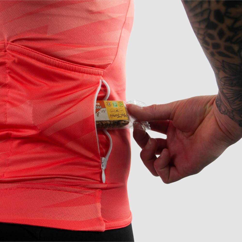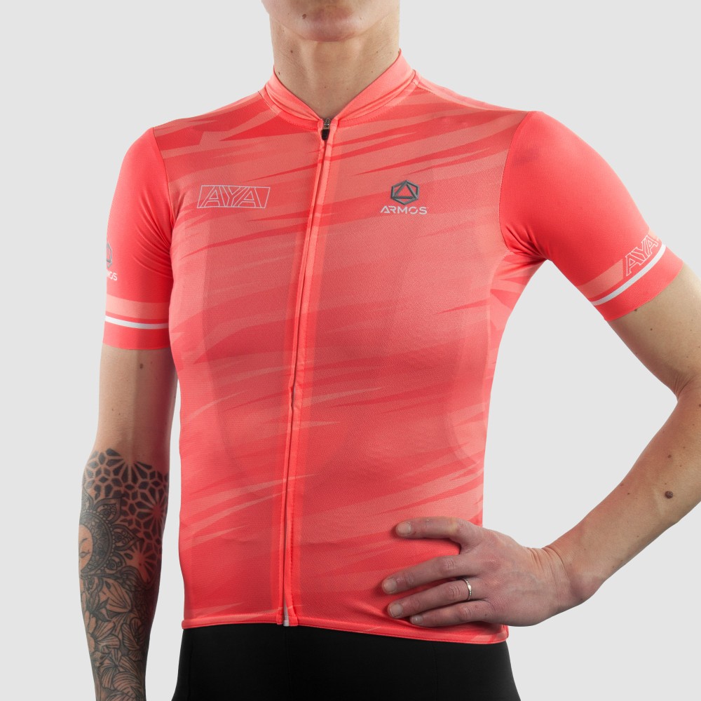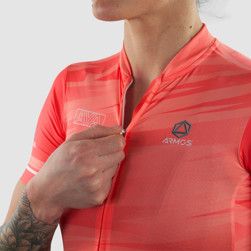 Little wonder of the French brand ARMOS, this jersey is dedicated to women cyclists who are looking for a curved and efficient product for summer outings. Its airy fabrics and sleeves with laser cut give a feeling of second skin to this swimsuit. Not having to blush vis à vis pro jerseys, this article was designed with sleeves a little shorter for your tan this summer. Ideal between 22 and 35 degrees, don’t hesitate to put on the kilometers with this superb very feminine jersey.