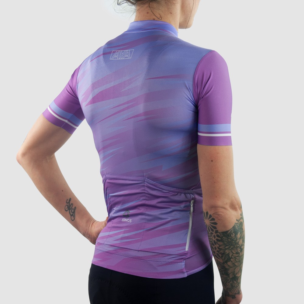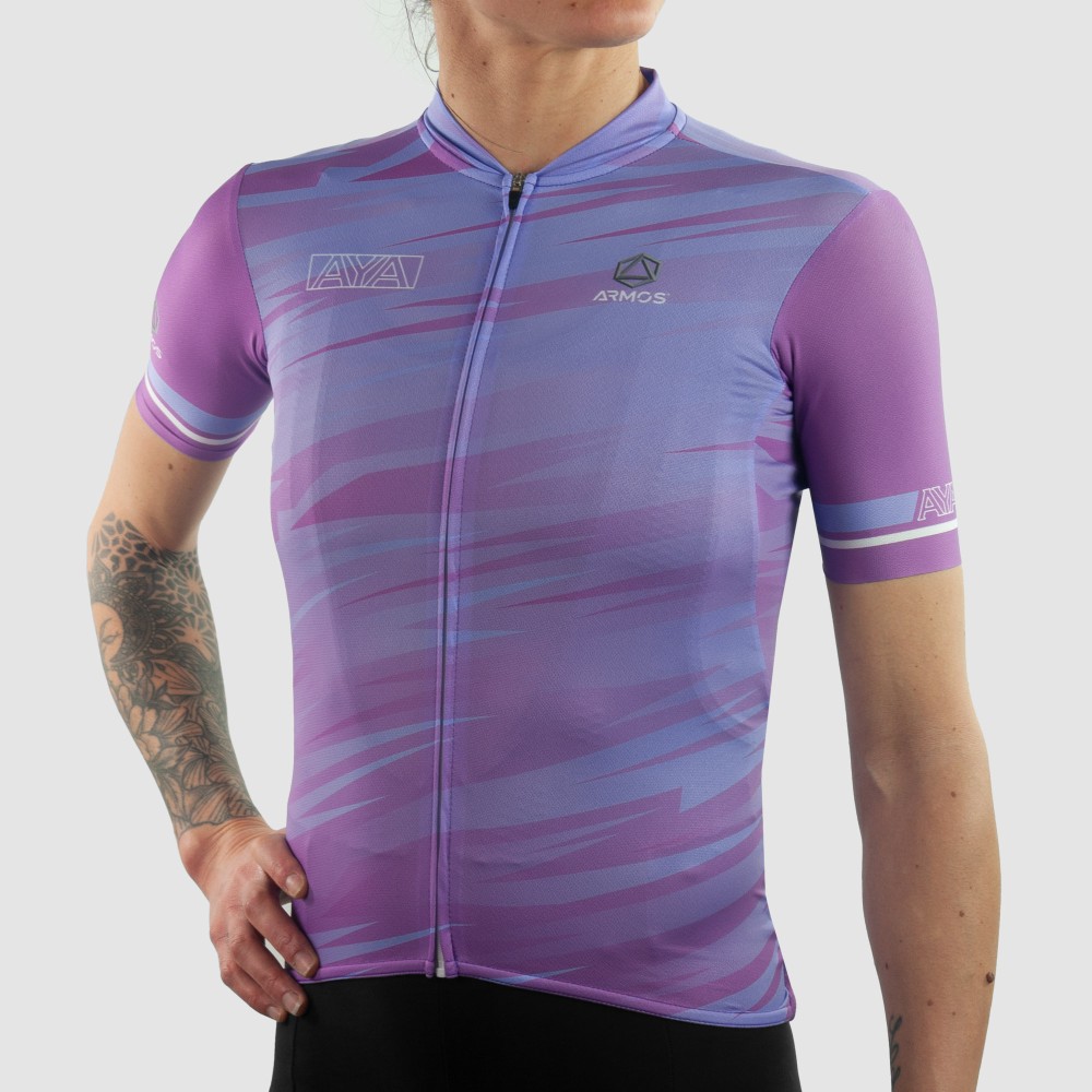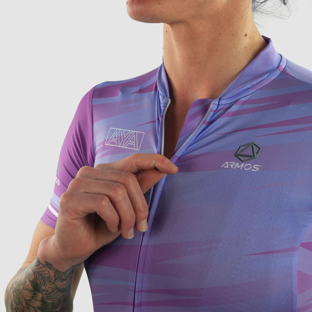 Little wonder of the French brand ARMOS, this jersey is dedicated to women cyclists who are looking for a curved and efficient product for summer outings. Its airy fabrics and sleeves with laser cut give a feeling of second skin to this swimsuit. Not having to blush vis à vis pro jerseys, this article was designed with sleeves a little shorter for your tan this summer. Ideal between 22 and 35 degrees, don’t hesitate to put on the kilometers with this superb very feminine jersey.