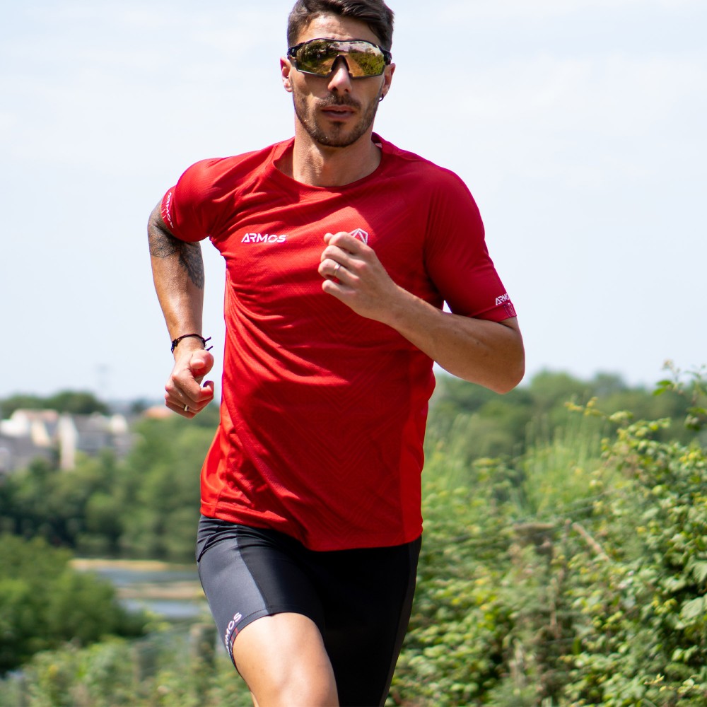 The ARMOS LEGEND collection has been developed for performance. This running jersey will allow you to break records. Thanks to its airy fabrics and flat anti-friction seams, challenge your friends on both short and long distances.