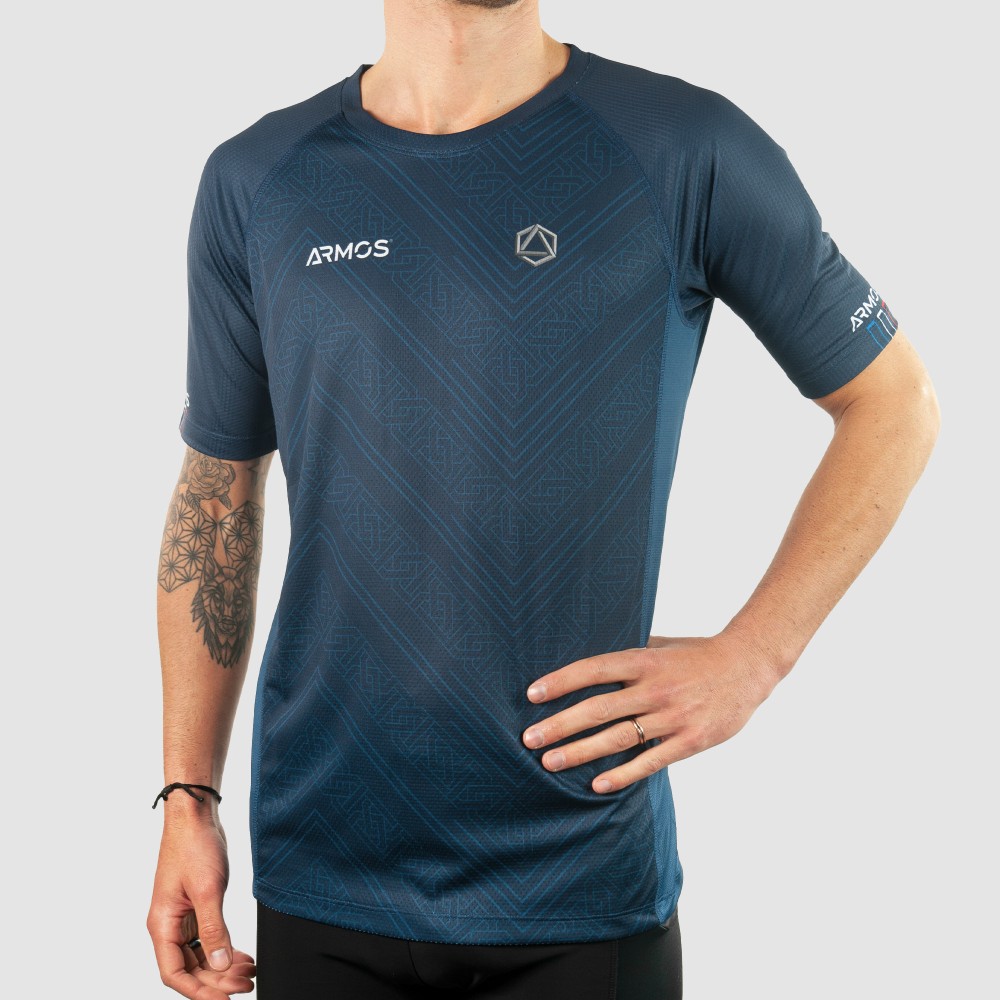 The ARMOS LEGEND collection has been developed for performance. This running jersey will allow you to break records. Thanks to its airy fabrics and flat anti-friction seams, challenge your friends on both short and long distances.
