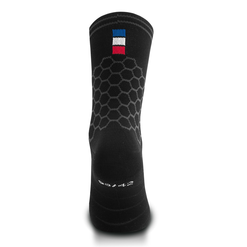 ARMOS COMPRESSIO socks have been specially developed for TRAIL. They are both solid thanks to the multiple reinforcements and comfortable. Equipped with compressive technology, they tighten the foot well to provide anti-fatigue properties during long distances. A special weave on the back helps to hold the Achilles tendon in order to face great challenges.