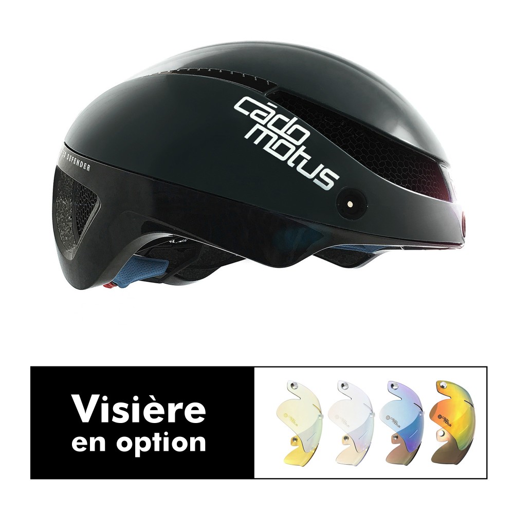 Discover the CADOMOTUS OMEGA aerodynamic helmet. It is very versatile and suitable for triathlon, cycling or skating. It has a magnetic visor that can be removed very easily.