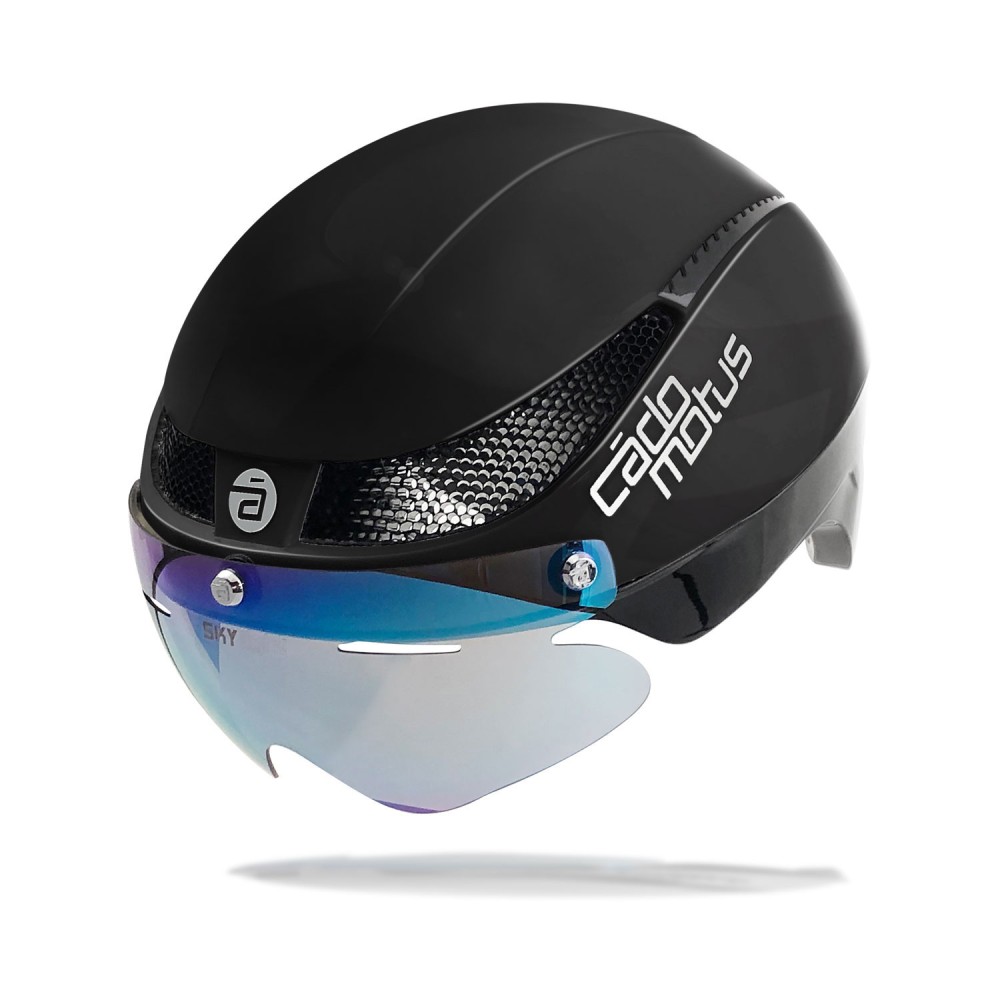 The brand CADOMOTUS has developed this helmet for athletes looking for an aerodynamic product, compact and light. It has a magnetic visor that can be removed very easily.