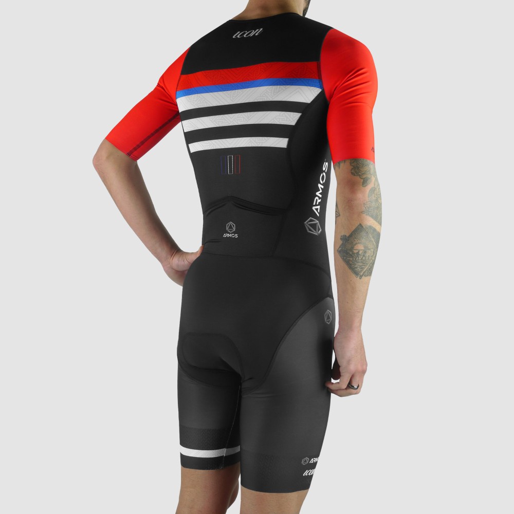 The French brand ARMOS has developed this high-end trifunction for long distances. It has sleeves and thighs with seamless laser cutting to limit friction. This product is very practical thanks to its integrated jersey with horizontal opening to the belt which is so much sought after for long events. Equipped with a high-end tri-skin adapted up to the Ultra distance, leave with confidence with maximum comfort.