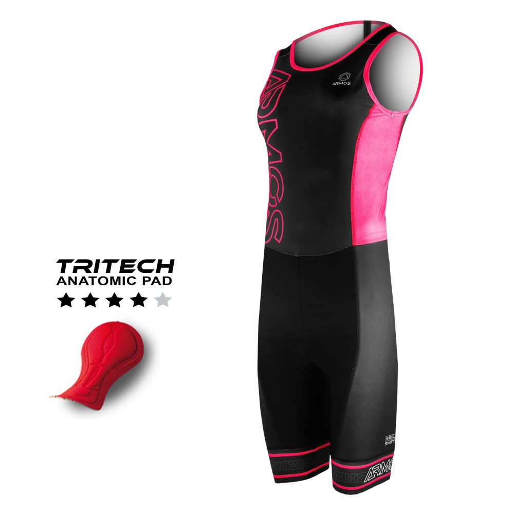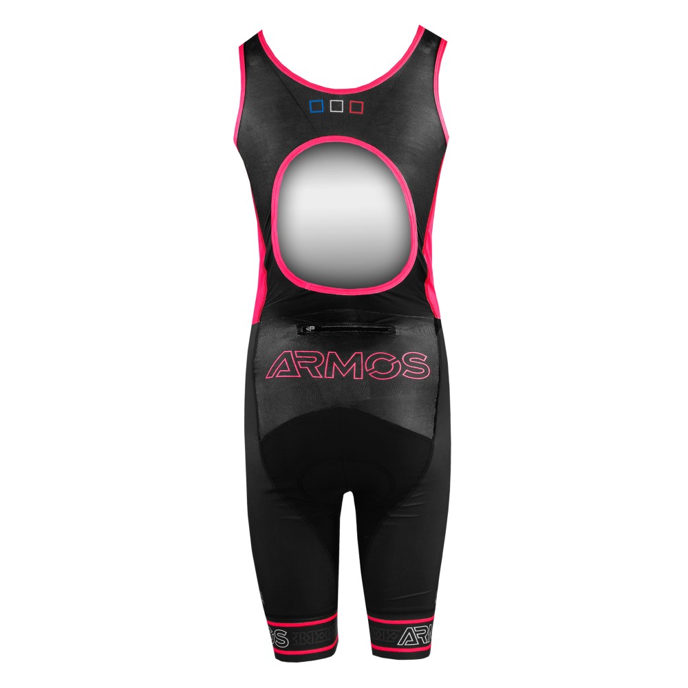 Armos offers this new women’s suit for short distances. Its design is neon for maximum visibility. Its cut is with swimmer back and close to the body. The fabrics dry very quickly and are breathable. Featuring a special triathlon skin, this product will be perfect for distances from XS to M.