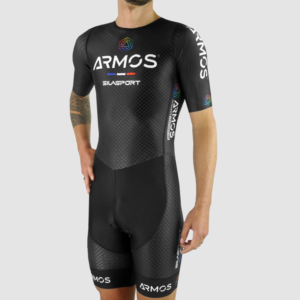 This ARMOS product has been developed for roller athletes looking for an aerodynamic and performance combination. It has a modern cut for maximum look. The assembly of lycra aero and checkered confirms the high quality of this outfit.