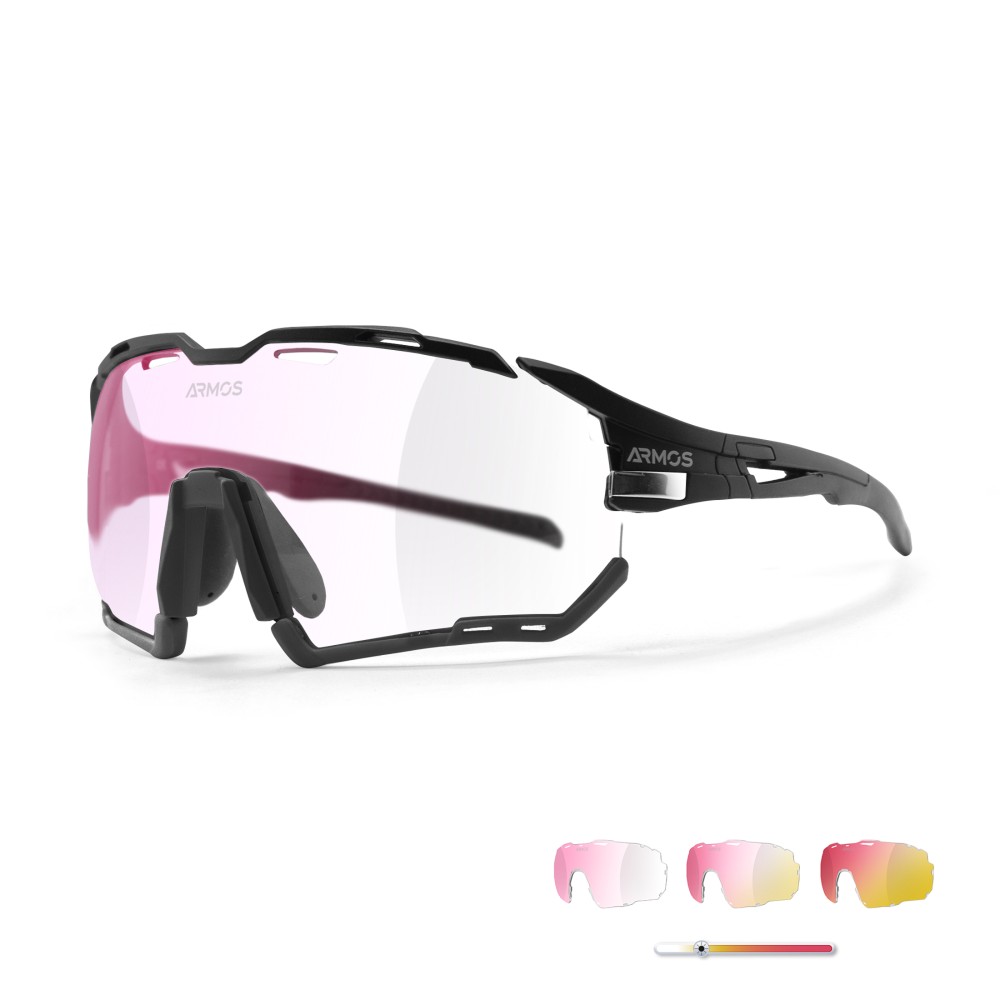 With their elaborate design and extreme lightness, the ARMOS Elius glasses will be perfect to get the performance. The glass with a large screen allows high visibility and maximum protection. This pair of glasses is equipped with photochromic lenses that adapt very quickly to the brightness. They are thus perfect for competitions with very diverse environments. This product comes in a beautiful case with 3 additional interchangeable glasses to adapt to all situations.