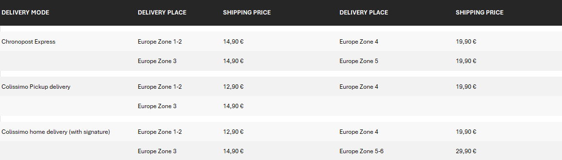 For other destinations outside EU, shipping costs are calculated based on weight and country. The exact amount is always displayed before final payment—no surprises at checkout.