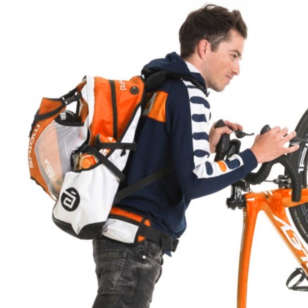 - Cyclisme, triathlon et running : Rangement casque, bidon et chaussures grâce aux nombreuses poches dont 2 latérales.