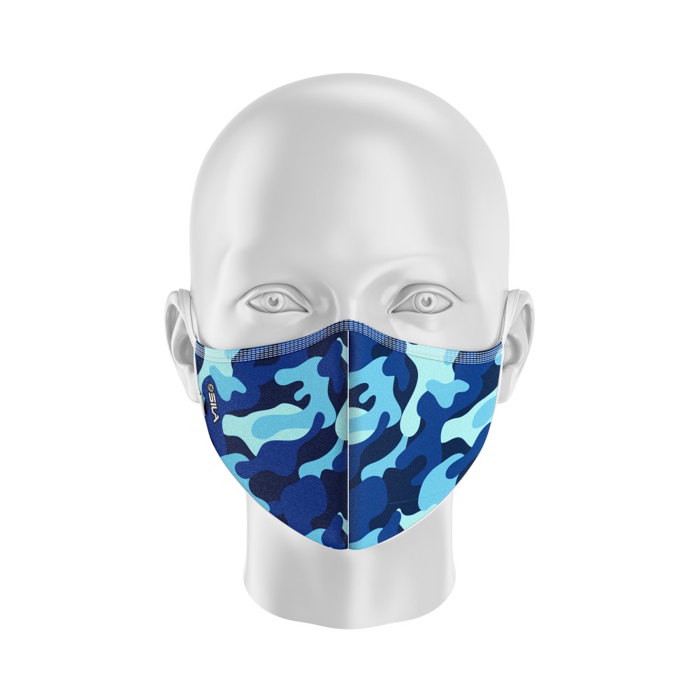 Masque tissu SILA CAMO BLEU - Forme Coquille - Filtration 3