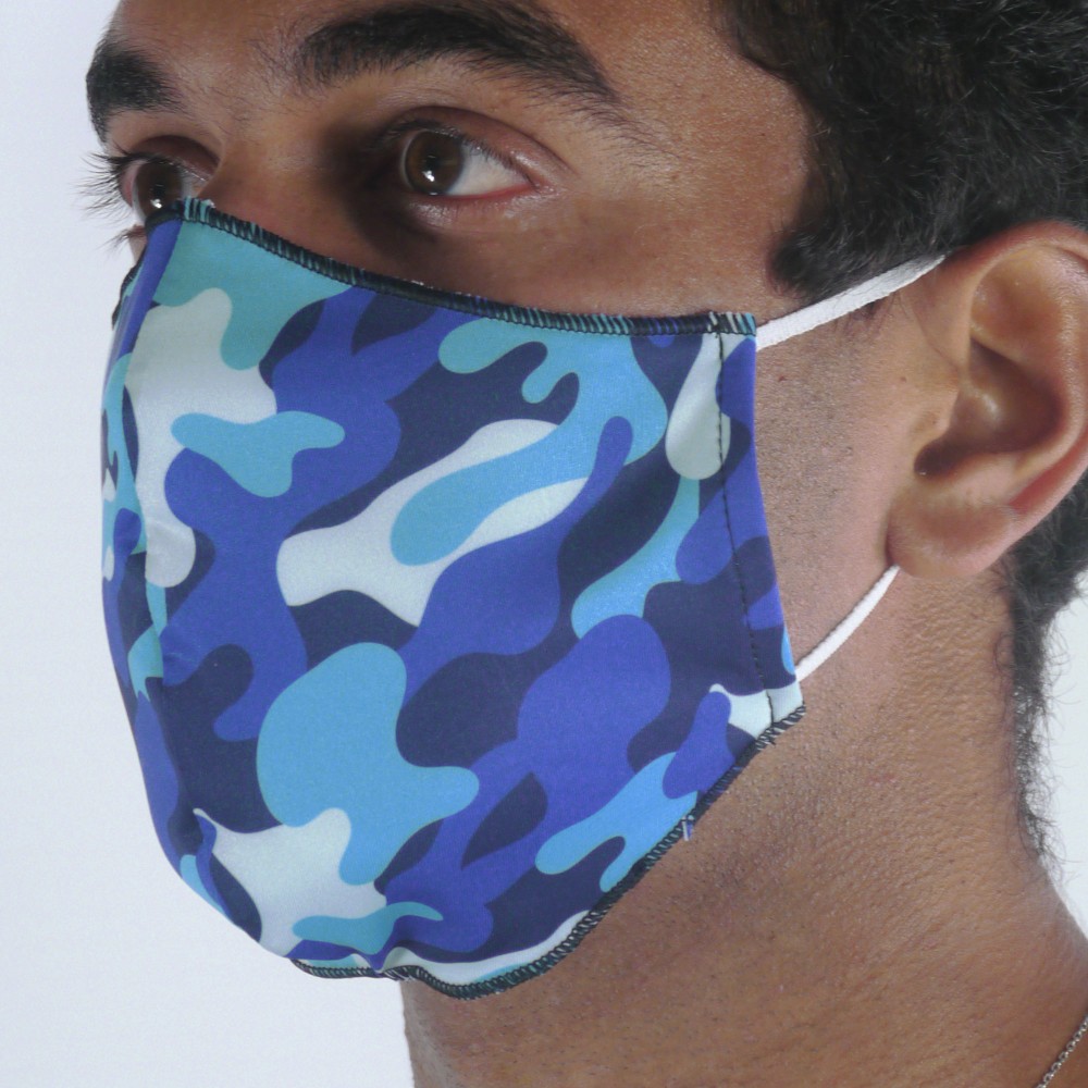 Masque de Protection SILA CAMO BLEU - Forme Coquille - 2 couches - Réutilisable et lavable