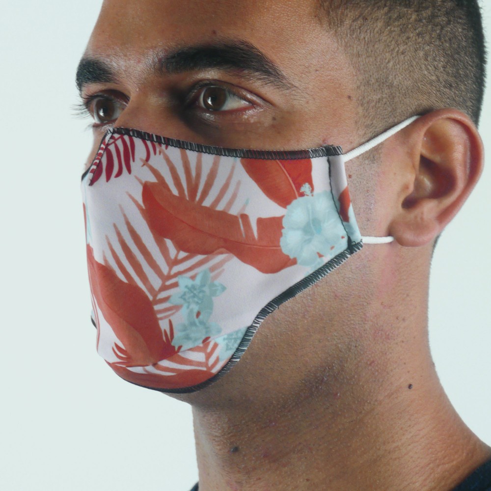 Masque tissu SILA TROPICAL BLANC - Forme Ergo - Filtration 2 - UNS2