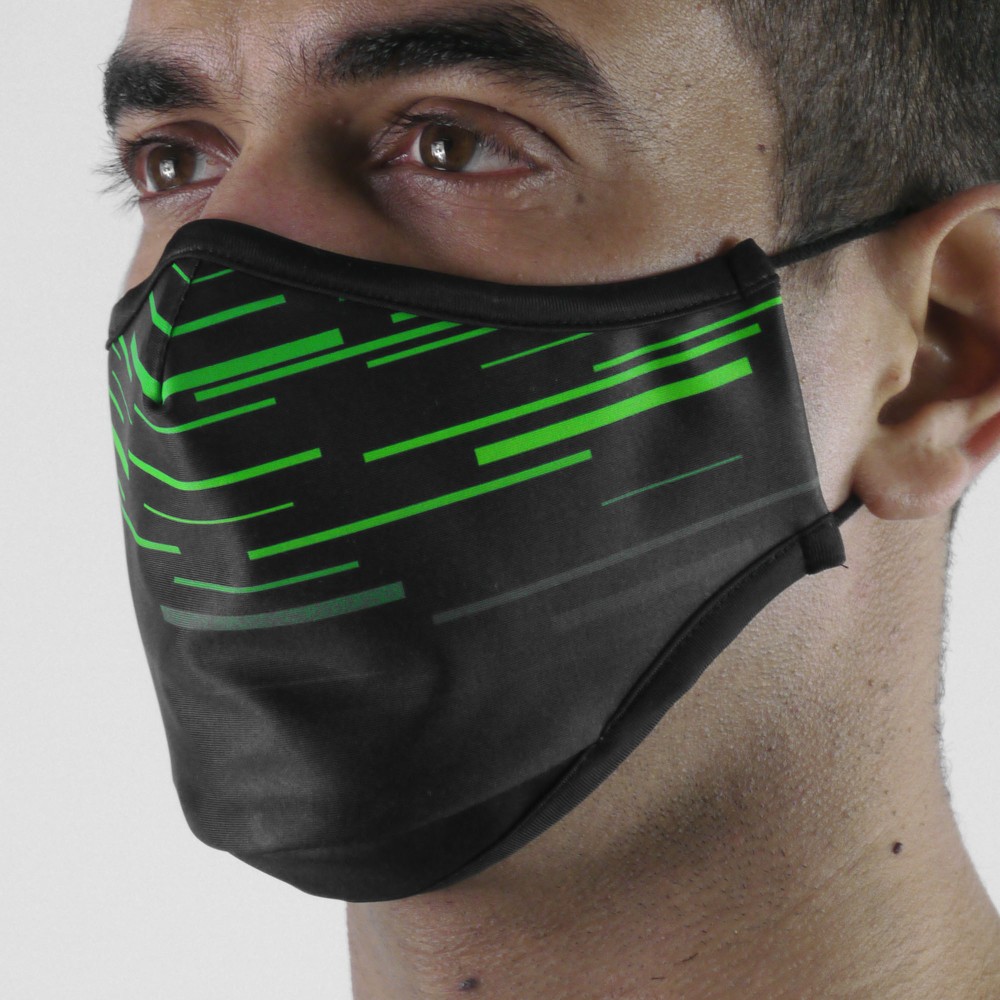 Masque tissu SILA LASER VERT AJUSTABLE - Forme Ergo - Filtration 2 - UNS2