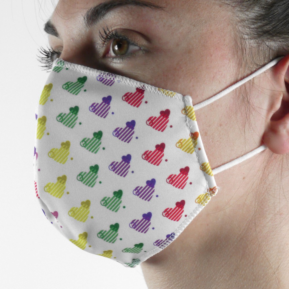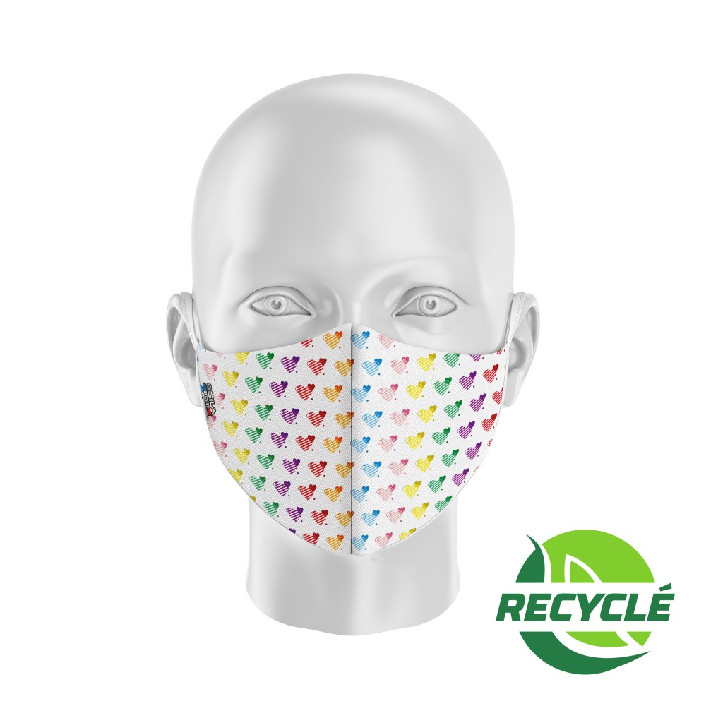 Masque tissu SILA HEART BLANC MULTICOLOR - Forme Coquille - Filtration 1 - UNS1