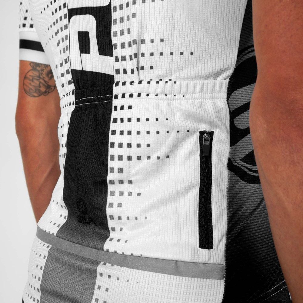 Ce produit possède 4 poches dont une zippée afin d’emporter un élément de valeur en tout sécurité. Le maillot s’associera très bien avec le cuissard SILA Pulse qui est d’ailleurs très confortable avec sa peau Italienne avec inserts gel.