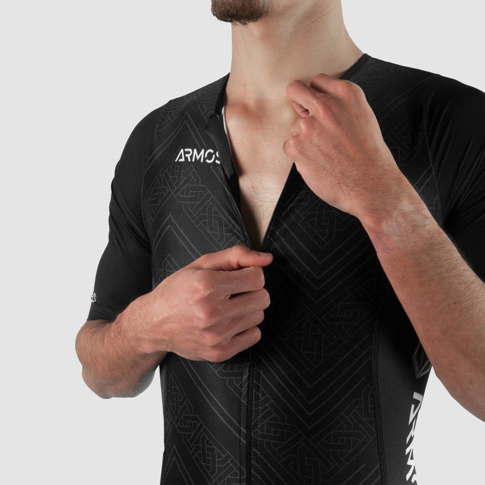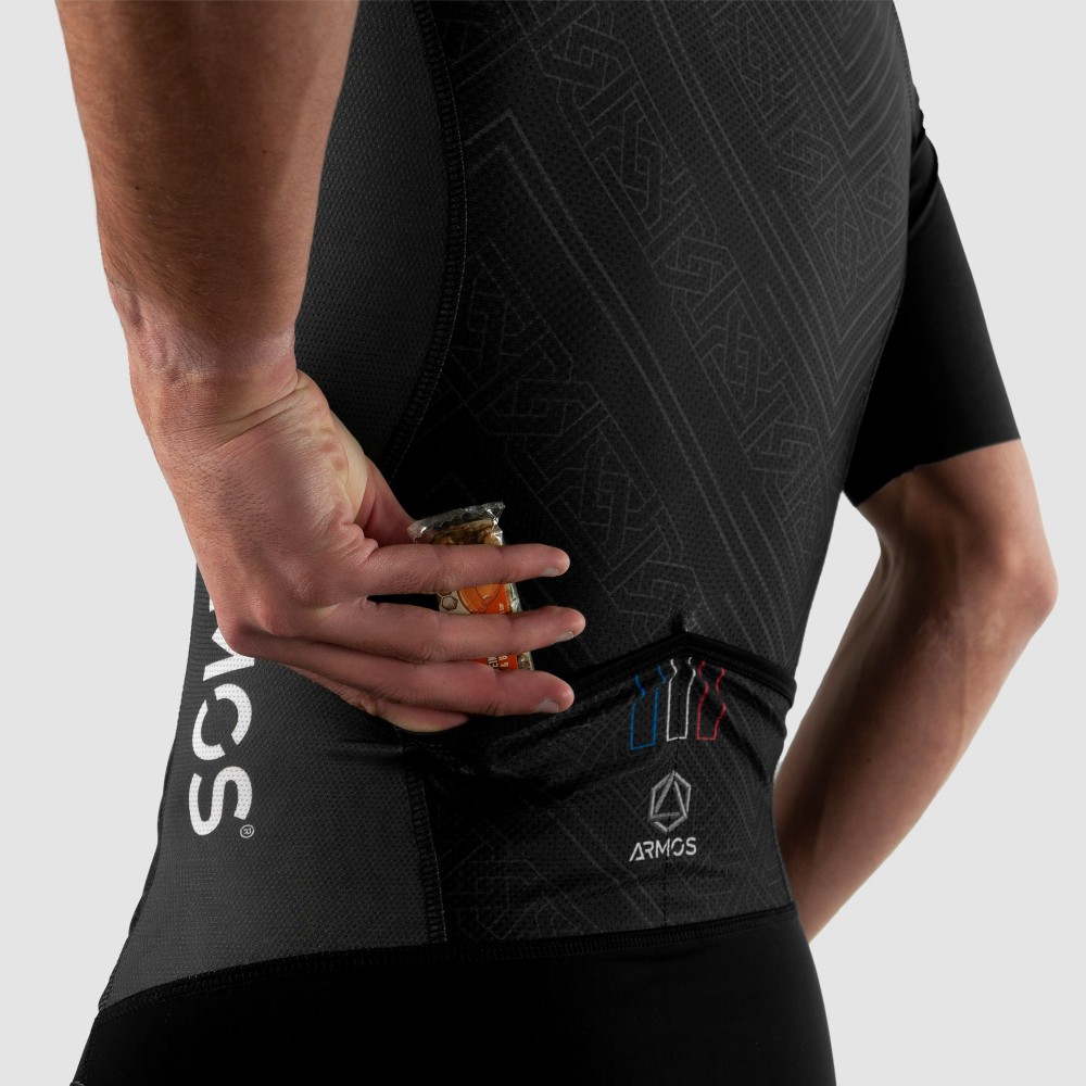 La marque Française ARMOS a développé cette trifonction afin de parcourir les triathlons longues distances mythiques. Ce produit est très pratique grâce à son maillot intégré avec ouverture horizontale à la ceinture qui est tant recherché pour les longues épreuves. Dotée de coutures plates anti-irritations et de découpe laser sans couture aux manches, cette trifonction vous accompagnera parfaitement dans vos futurs défis.