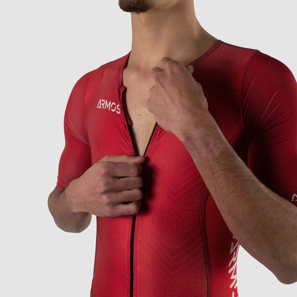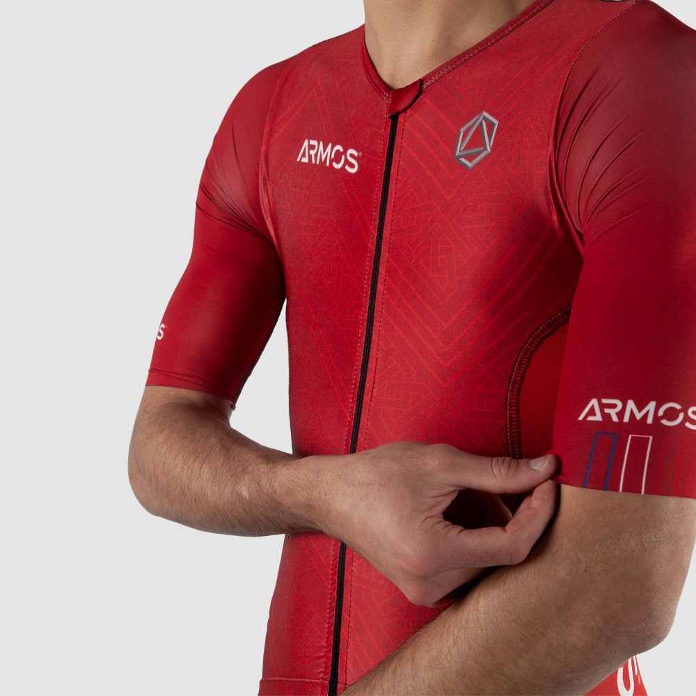 La marque Française ARMOS a développé cette trifonction afin de parcourir les triathlons longues distances mythiques. Ce produit est très pratique grâce à son maillot intégré avec ouverture horizontale à la ceinture qui est tant recherché pour les longues épreuves. Dotée de coutures plates anti-irritations et de découpe laser sans couture aux manches, cette trifonction vous accompagnera parfaitement dans vos futurs défis.