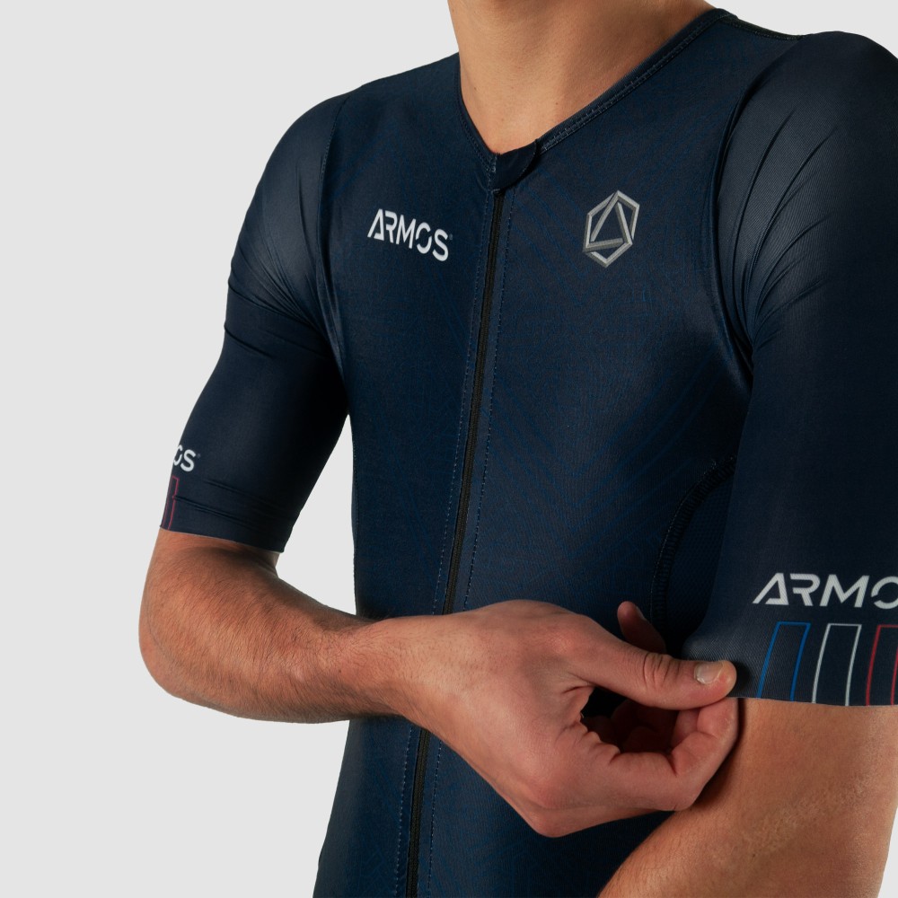 La marque Française ARMOS a développé cette trifonction afin de parcourir les triathlons longues distances mythiques. Ce produit est très pratique grâce à son maillot intégré avec ouverture horizontale à la ceinture qui est tant recherché pour les longues épreuves. Dotée de coutures plates anti-irritations et de découpe laser sans couture aux manches, cette trifonction vous accompagnera parfaitement dans vos futurs défis.
