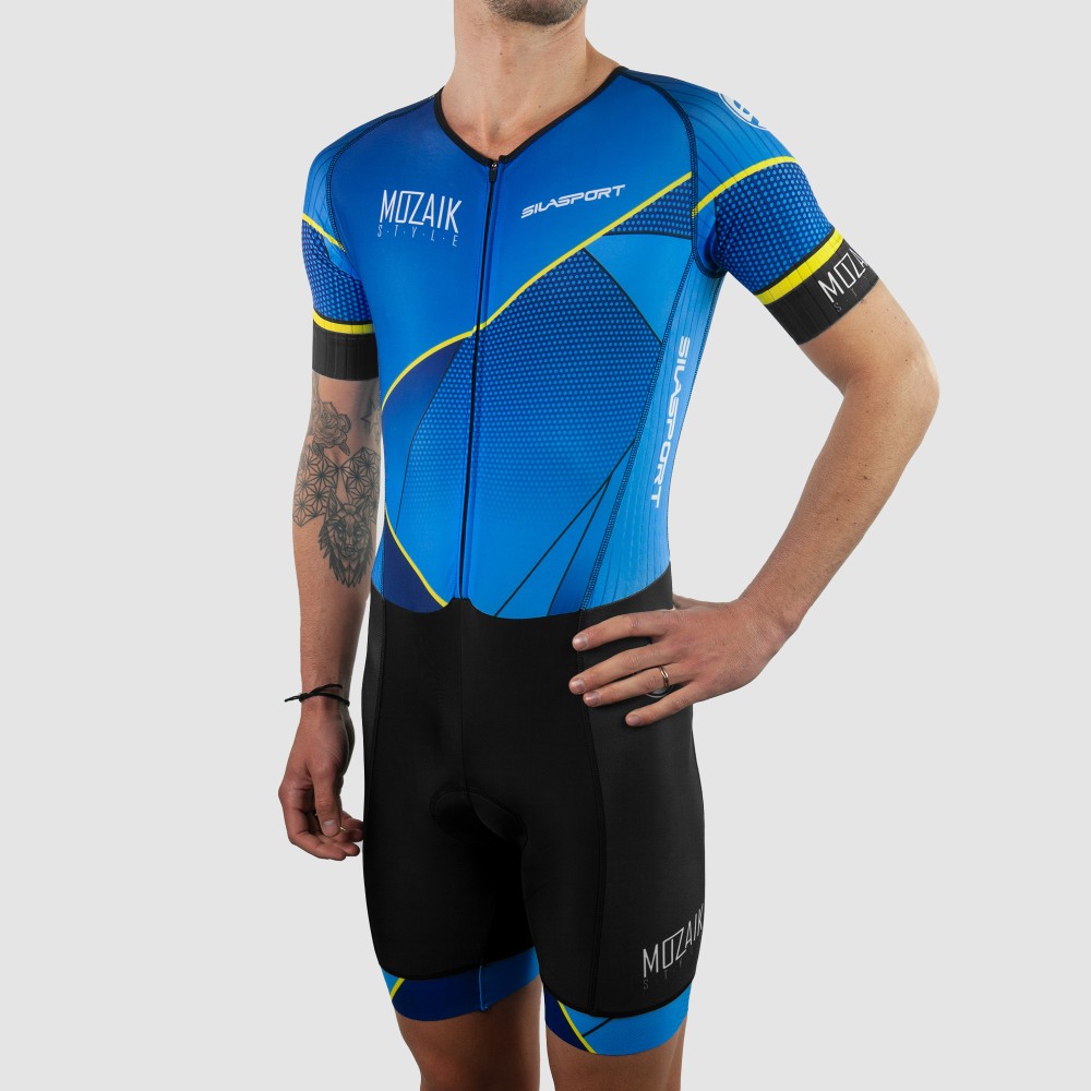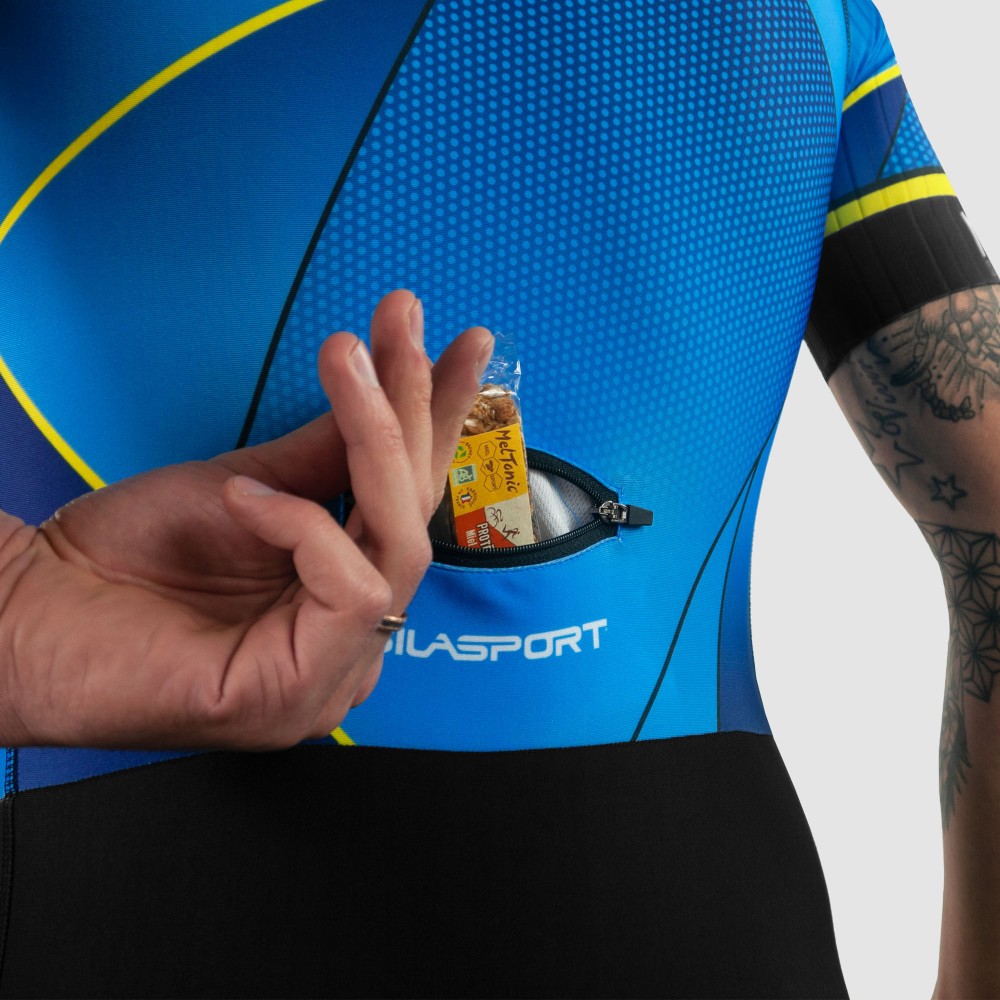 SILASPORT a créé cette trifonction avec un design original et visible. Grâce à sa coupe et ses tissus, ce produit est spécialement adapté pour les courtes distances. Il possède des bandes grip aux cuisses pour un ajustement parfait. Son zip avant et ses coutures plates rendent ce produit plus confortable afin de pouvoir l’utiliser jusqu’à la distance M.