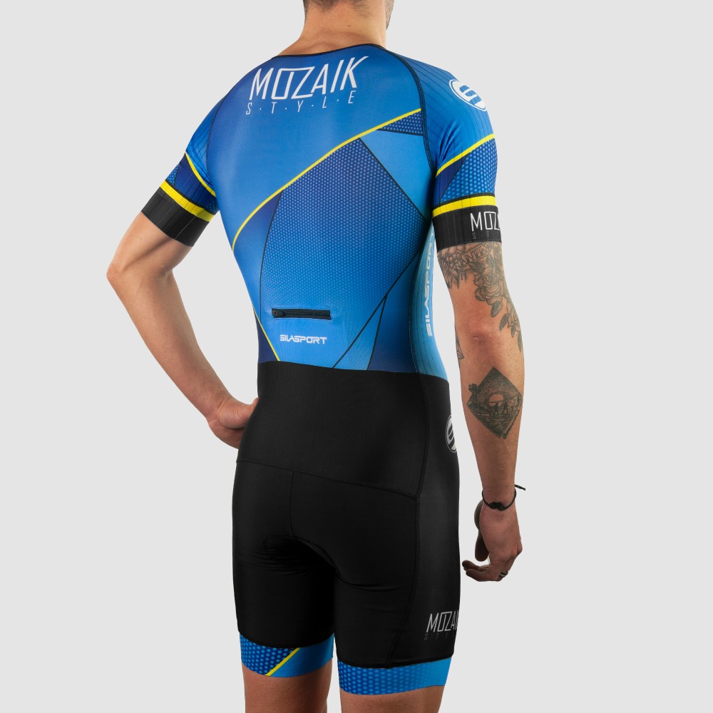 SILASPORT propose une collection MOZAIK Style pour la performance. Cette trifonction est à la fois confortable et rapide. Elle évacue parfaitement la transpiration grâce à son tissu aéré sur les côtés. Son lycra sèche rapidement dès la sortie de l’eau. La peau très fine est adaptée pour les courtes distances et ne retient pas l’eau après la natation. Cette magnifique trifonction est idéale pour les distances du XS au M.