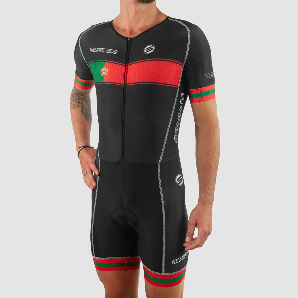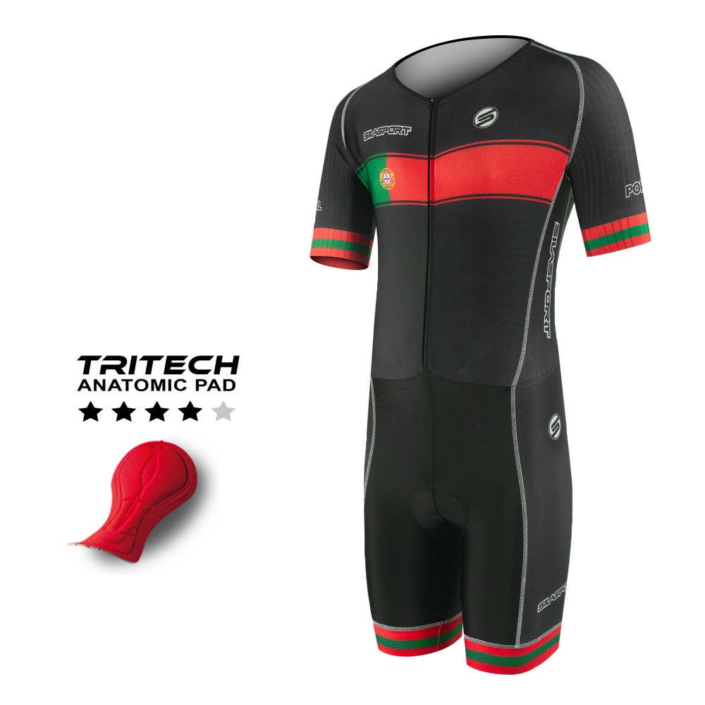 SILASPORT a créé cette trifonction avec un design qui représente votre nation favorite. Grâce à sa coupe et ses tissus, ce produit est spécialement adapté pour les courtes distances. Il possède des bandes grip aux cuisses pour un ajustement parfait. Son zip avant et ses coutures plates rendent ce produit plus confortable afin de pouvoir l’utiliser jusqu’à la distance M.