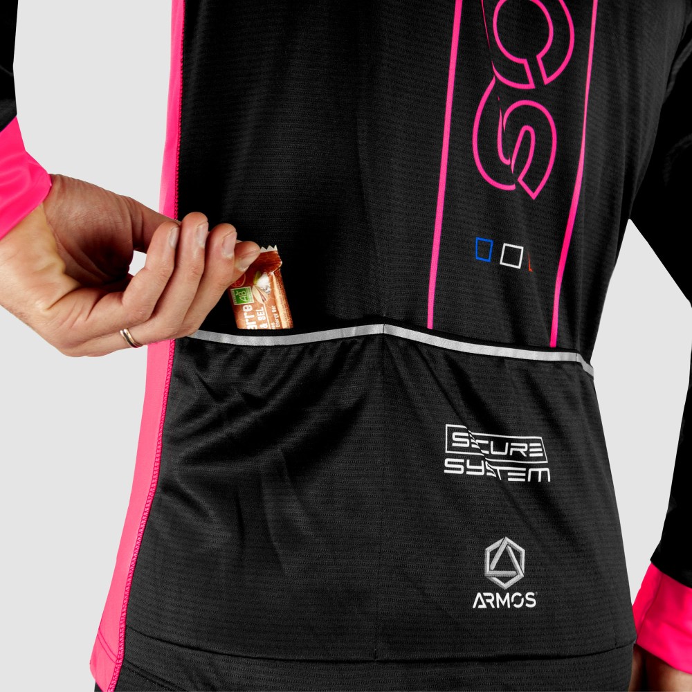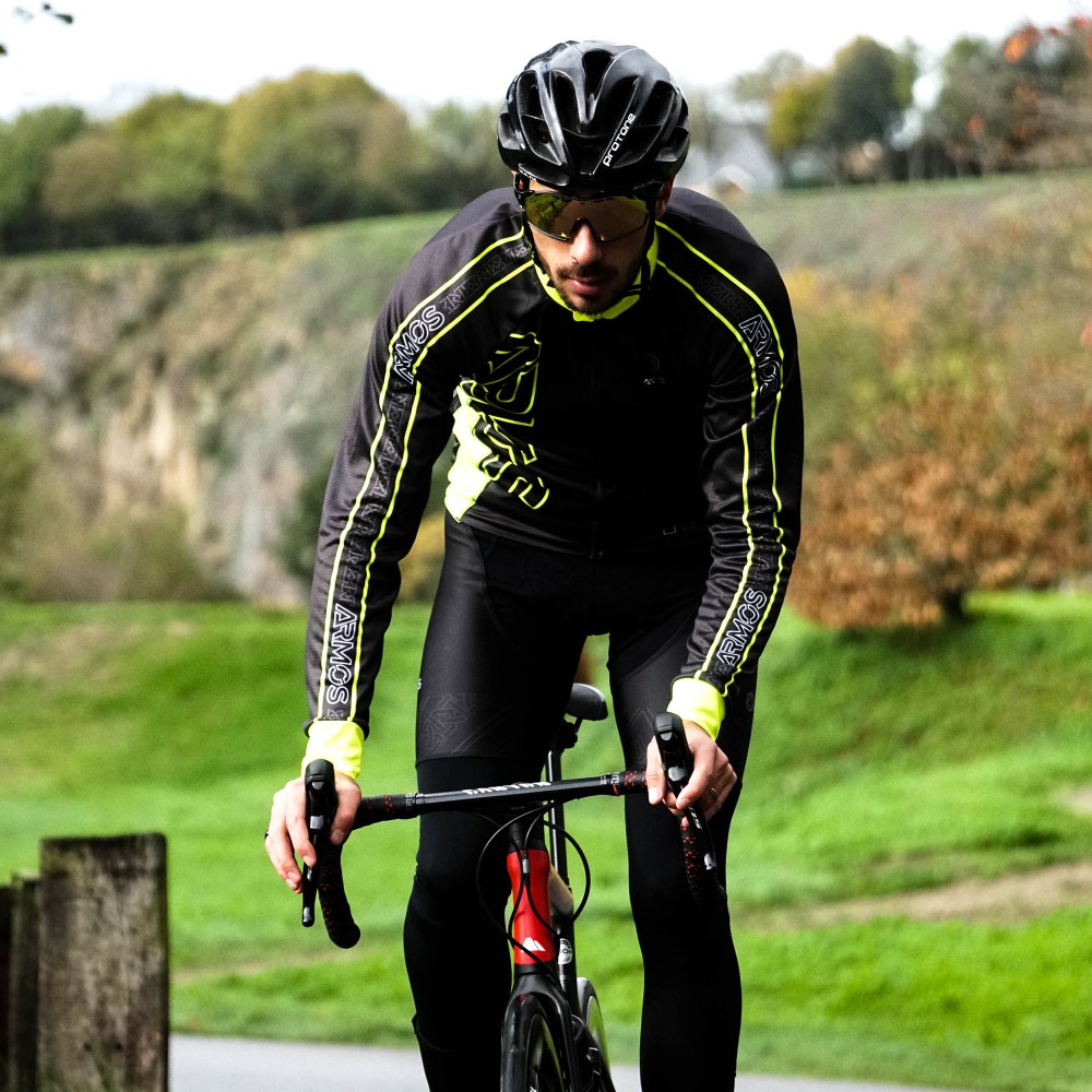 La collection ARMOS NEON est spécialement dédiée aux athlètes qui recherchent des produits performants et visibles. Ils possèdent un design avec des couleurs fluo et des liserés réfléchissants pour un maximum de sécurité. Ce maillot / Veste est parfait pour la mi-saison (7 – 15 degrés) grâce à son tissu avec intérieur micro-polaire. Il possède 4 poches arrière très pratiques. Vous pourrez donc effectuer des courtes et longues sorties avec ce produit.