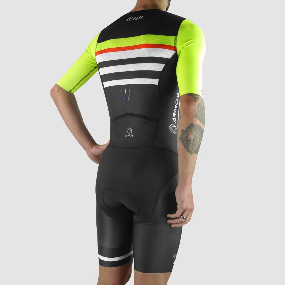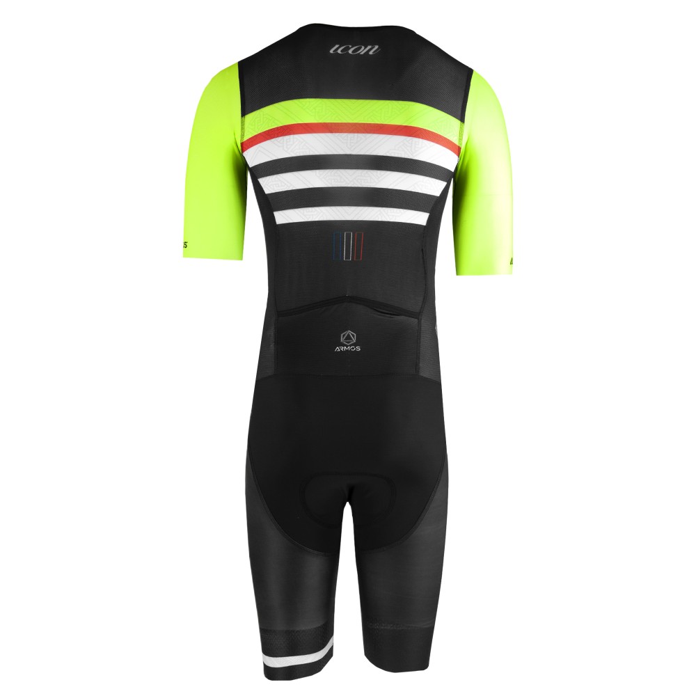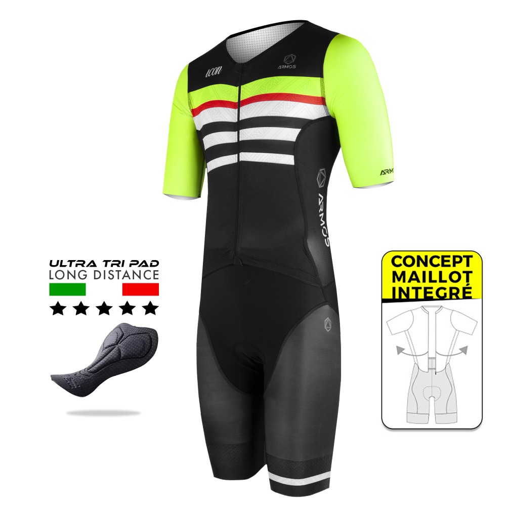 La marque Française ARMOS a développé cette trifonction haut de gamme pour les longues distances. Elle possède des bouts de manches et cuisses avec découpe laser sans couture afin de limiter les frottements. Ce produit est très pratique grâce à son maillot intégré avec ouverture horizontale à la ceinture qui est tant recherché pour les longues épreuves. Dotée d’une peau tri haut de gamme adaptée jusqu’à l’Ultra distance, partez en toute confiance avec un maximum de confort.