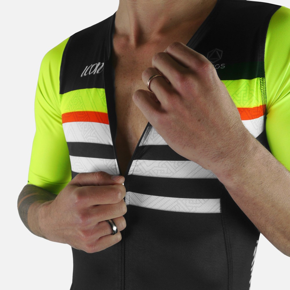 Cette trifonction haut de gamme a été spécialement développée pour les très longues distances en triathlon. Elle est composée de tissus très extensibles et ultra respirants sur la partie haute afin d’évacuer un maximum la transpiration. Grâce à ses découpes laser sans couture et ses coutures plates apparentes, tout est mis en place afin de limiter les irritations pendant vos épreuves. La peau Italienne haut de gamme spécialement étudiée pour les très longues distances vous apportera un maximum de confort.