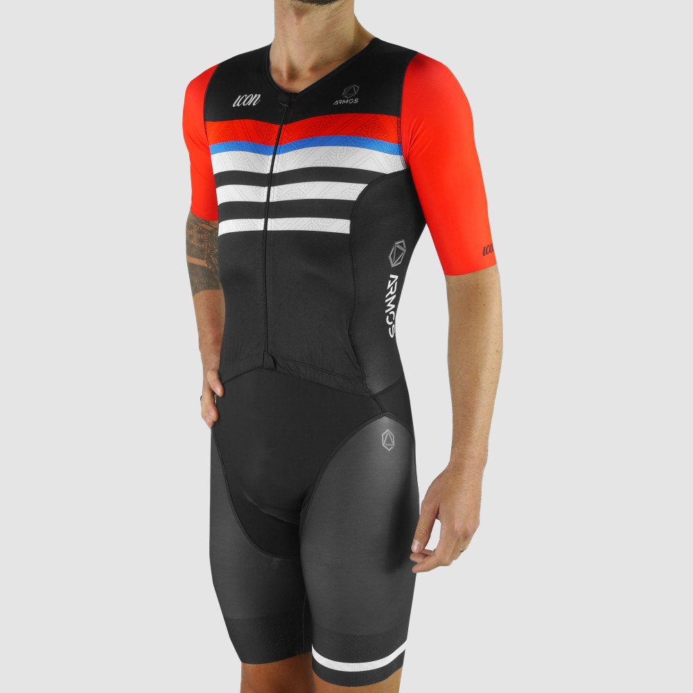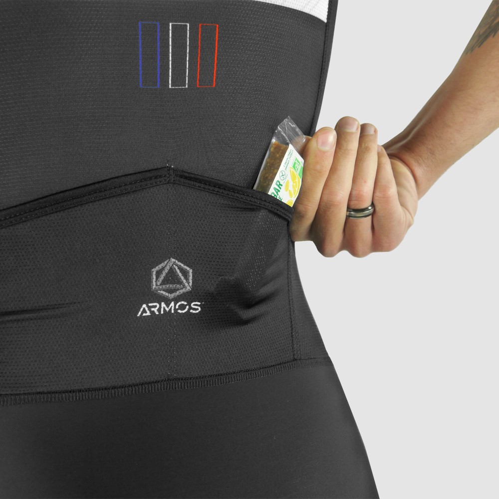 La marque Française ARMOS a développé cette trifonction haut de gamme pour les longues distances. Elle possède des bouts de manches et cuisses avec découpe laser sans couture afin de limiter les frottements. Ce produit est très pratique grâce à son maillot intégré avec ouverture horizontale à la ceinture qui est tant recherché pour les longues épreuves. Dotée d’une peau tri haut de gamme adaptée jusqu’à l’Ultra distance, partez en toute confiance avec un maximum de confort.