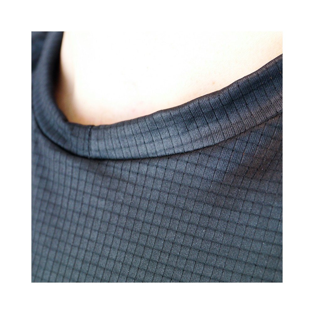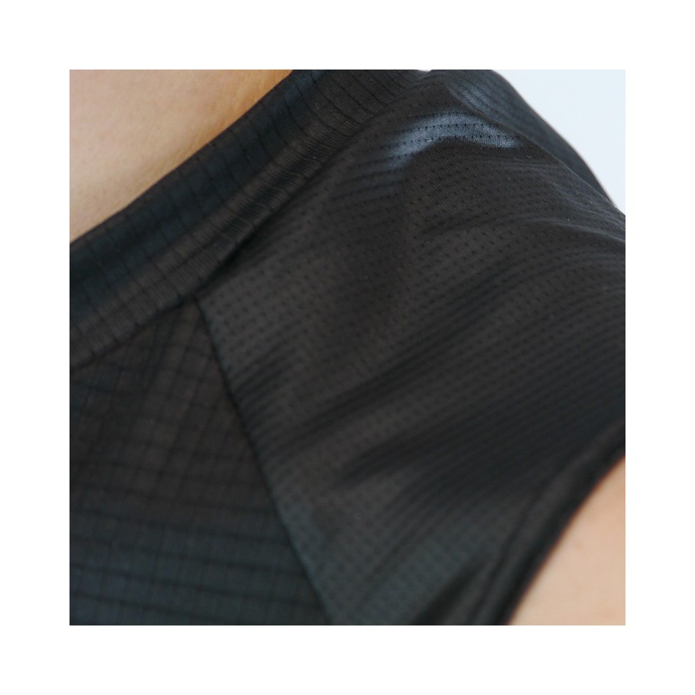 La coupe du débardeur a été conçu avec des insertions en tissu ultra aéré BRIVIDO sur les côtés et FULL MOON sur les épaules. La grande innovation du débardeur se situe par la maille quadrillée ultra légère de la face avant et arrière qui confère au produit une légèreté surprenante.
