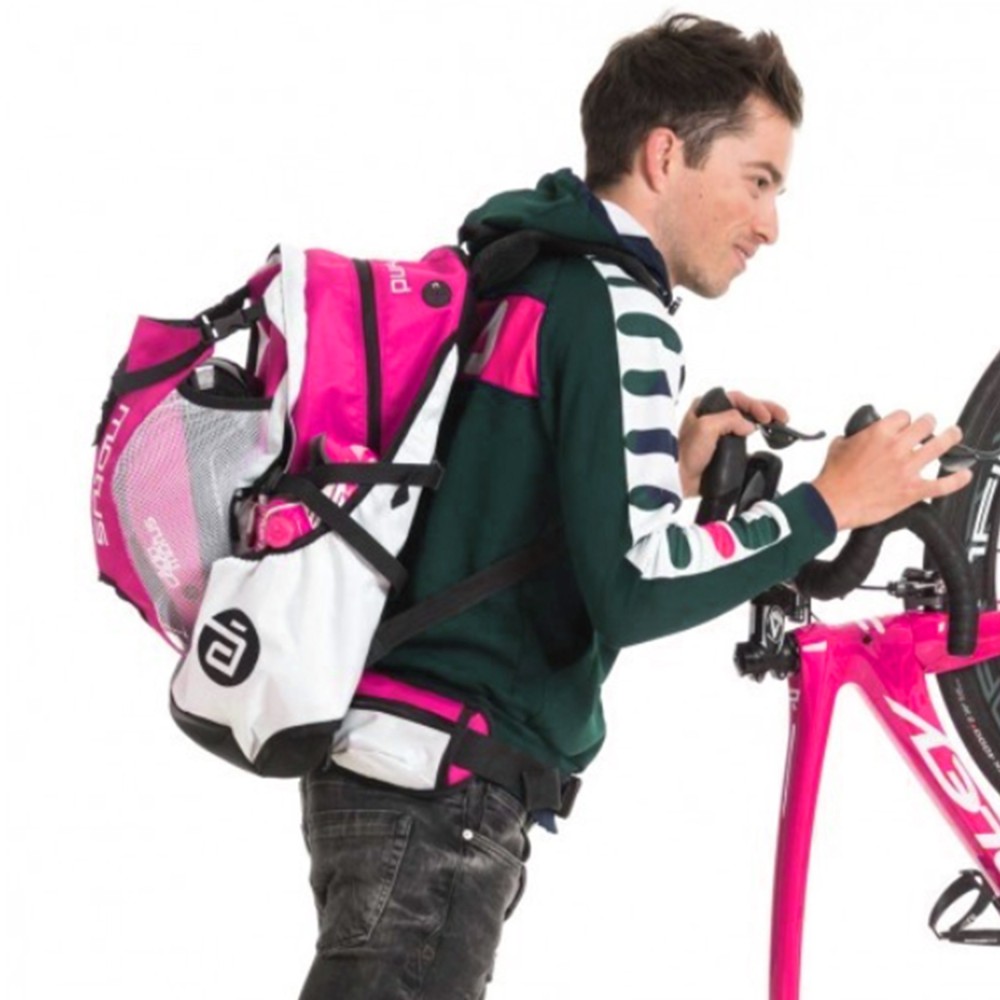 - Cyclisme, triathlon et running : Rangement casque, bidon et chaussures grâce aux nombreuses poches dont 2 latérales.